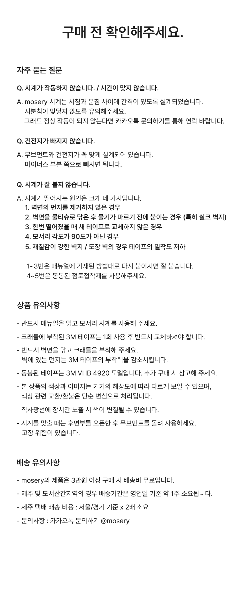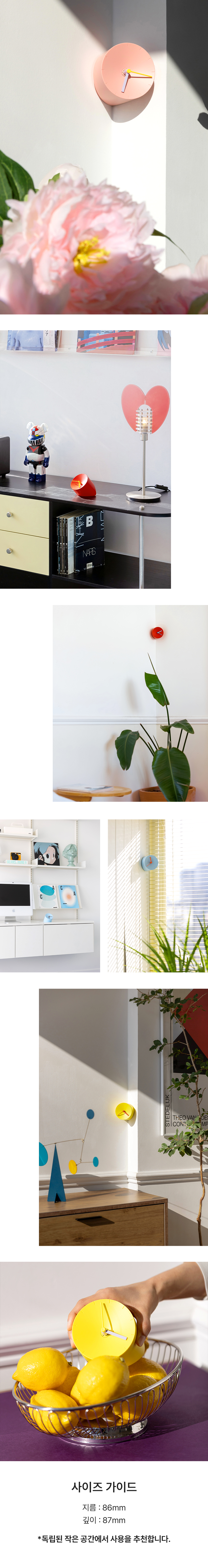 모서리 시계 (1ea), 모서리용 크래들 (1ea), 3M 테이프 (4ea), 랜덤 포스터카드 (1ea)